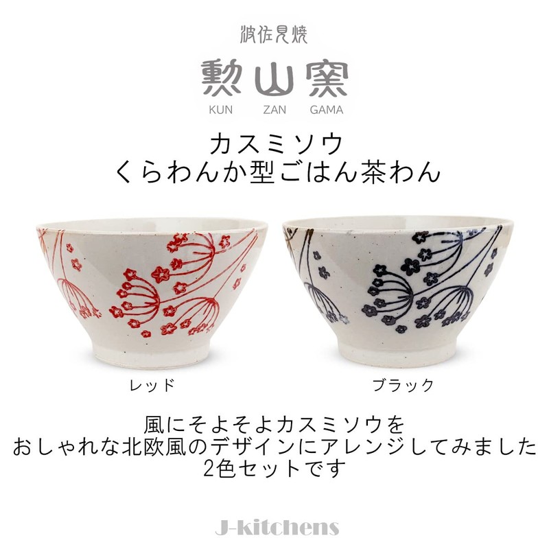 J-kitchens Pair Kurawanka Rice Bowl Set, Diameter 4.3 inches (11 cm), Height 2.6 inches (6.5 cm), Gypsophila Hasami Ware, Made in Japan