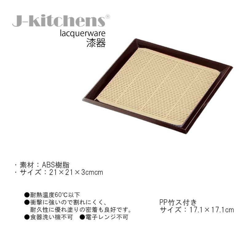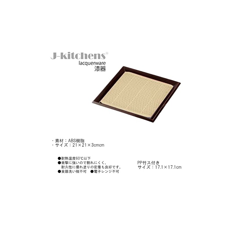 J-kitchens Soba Bowl, Zaru Soba, 7 Inch Square Cloth, Buckwheat Plate, Crack Resistant, Resin, 8.3 x 8.3 x 1.2 inches (21 x 21 x 3 cm), Made in Japan