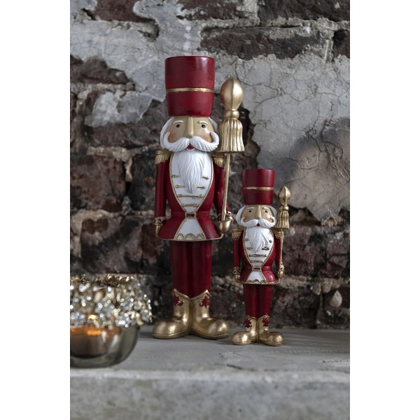 J-Line Nutcracker Set Resin White Red Gold 26 and 20 cm