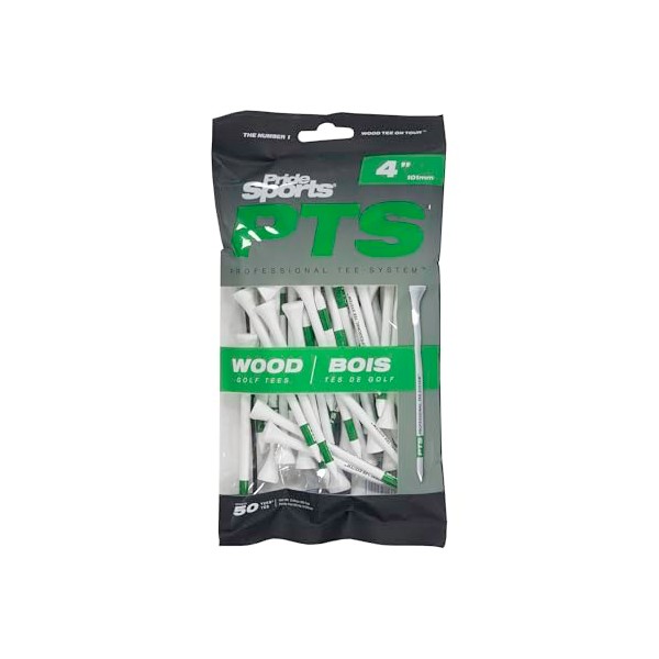 J&M PTS Pro Length Max Golf Tees (50-Count), White/Green, 4-Inch