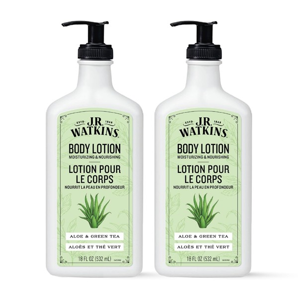 J.R. Watkins Daily Moisturizing Body Lotion, Aloe & Green Tea, 18 fl oz, 2 Pack