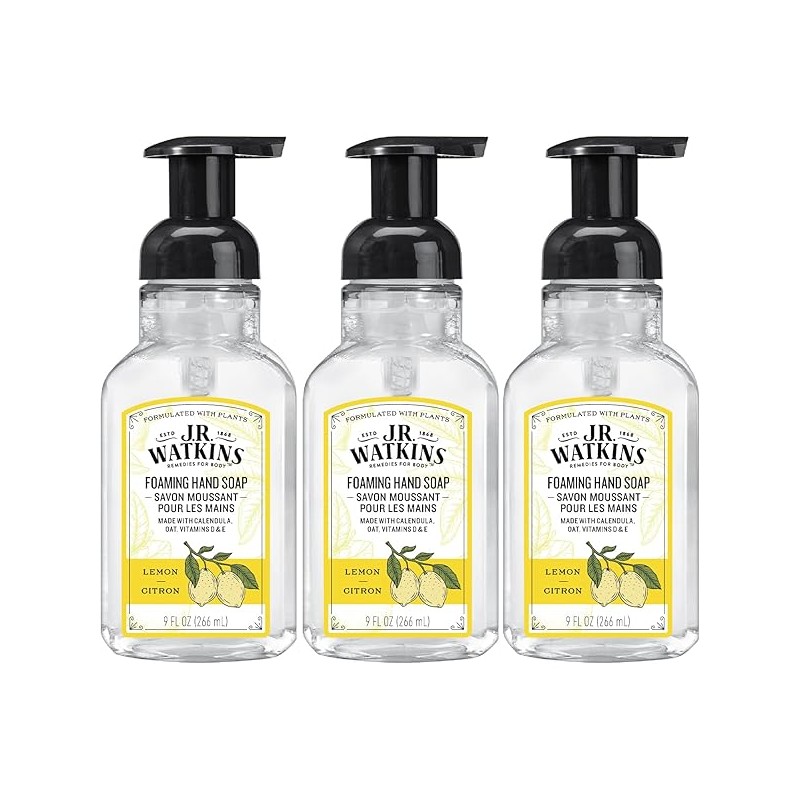 J.R. Watkins Foaming Hand Soap For Bathroom or Kitchen, Scented, USA Made And Cruelty Free, 9 Fl Oz, Lemon, 3 Pack