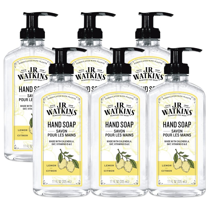 J.R. Watkins Gel Hand Soap, Scented Liquid Hand Wash for Bathroom or Kitchen, USA Made and Cruelty Free, 11 fl oz, Lemon, 6 Pack