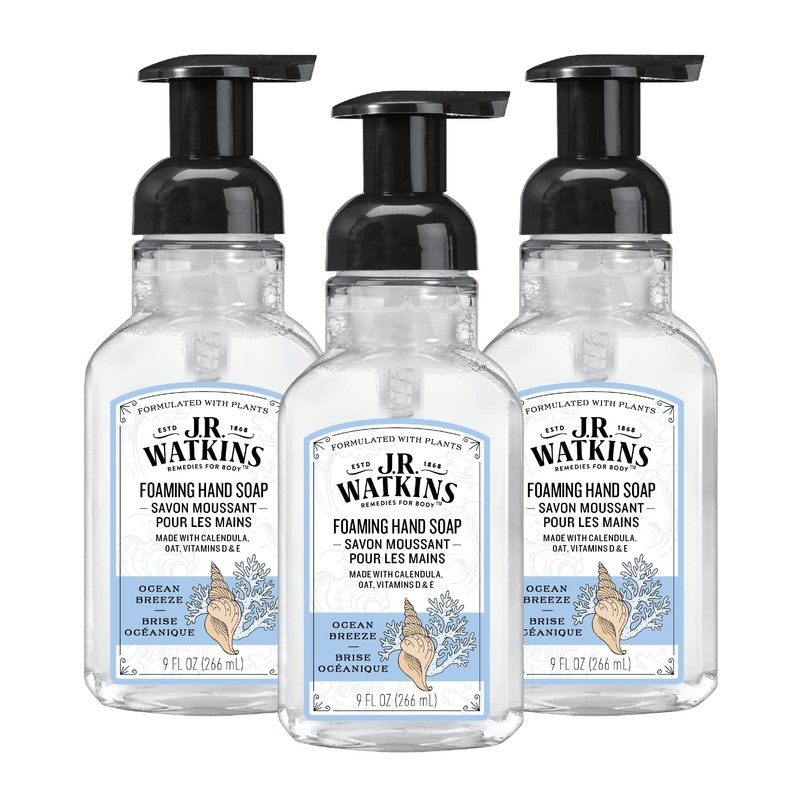 J.R. Watkins J.R. Watkins Foaming Hand Soap with Pump Dispenser, Moisturizing Foam Hand Wash, All Natural, Alcohol-Free, Cruelty-Free, USA Made, Ocean Breeze, 9 fl oz, 3 Pack