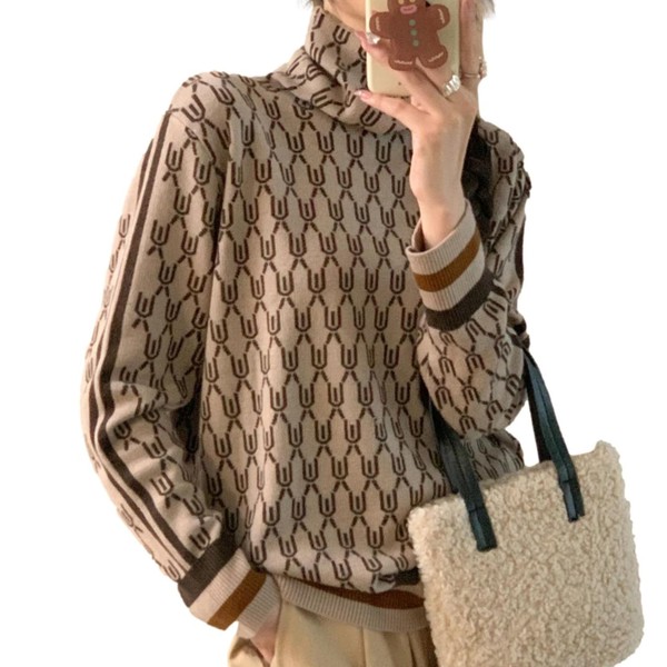 - (Add a playful geometric pattern to your outfit) The calm coloring of beige and brown gives the geometric pattern an elegant and classic impression. Soft knit material with a subtle brushed feel is comfortable and provides ample warmth. The stretchy polyester material is easy to clean