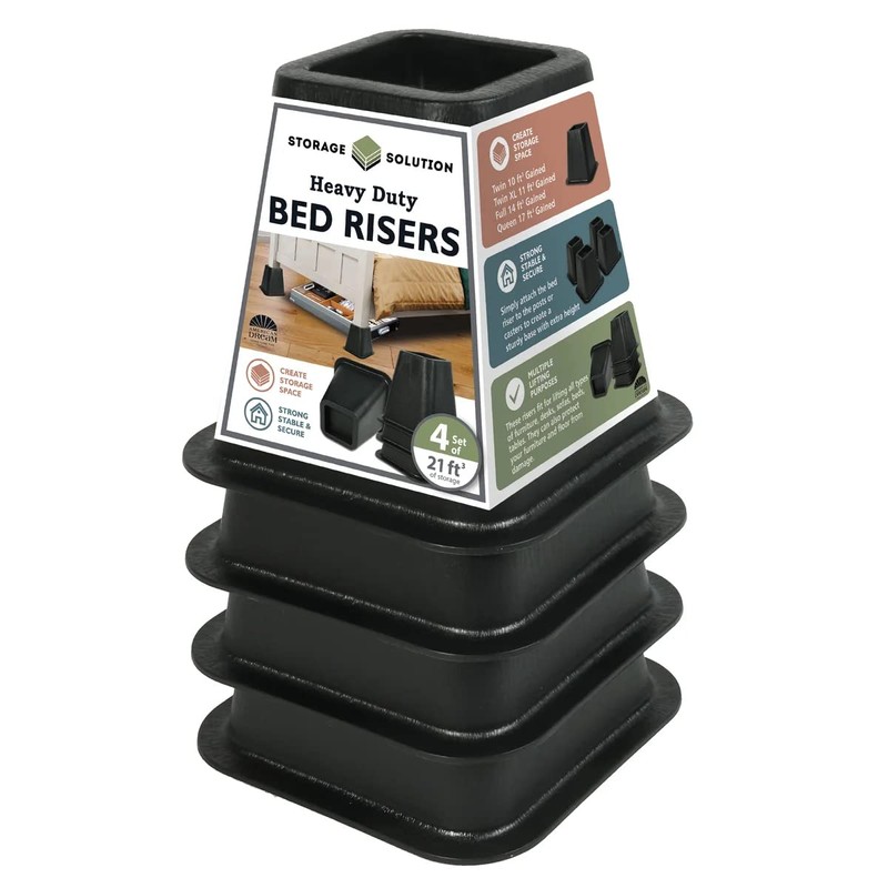 - Bed risers can be used save storage space: Twin 10 Ft Gained, Twin XL 11 Ft Gained, Full 14 Ft Gained, Queen 17 Ft Gained