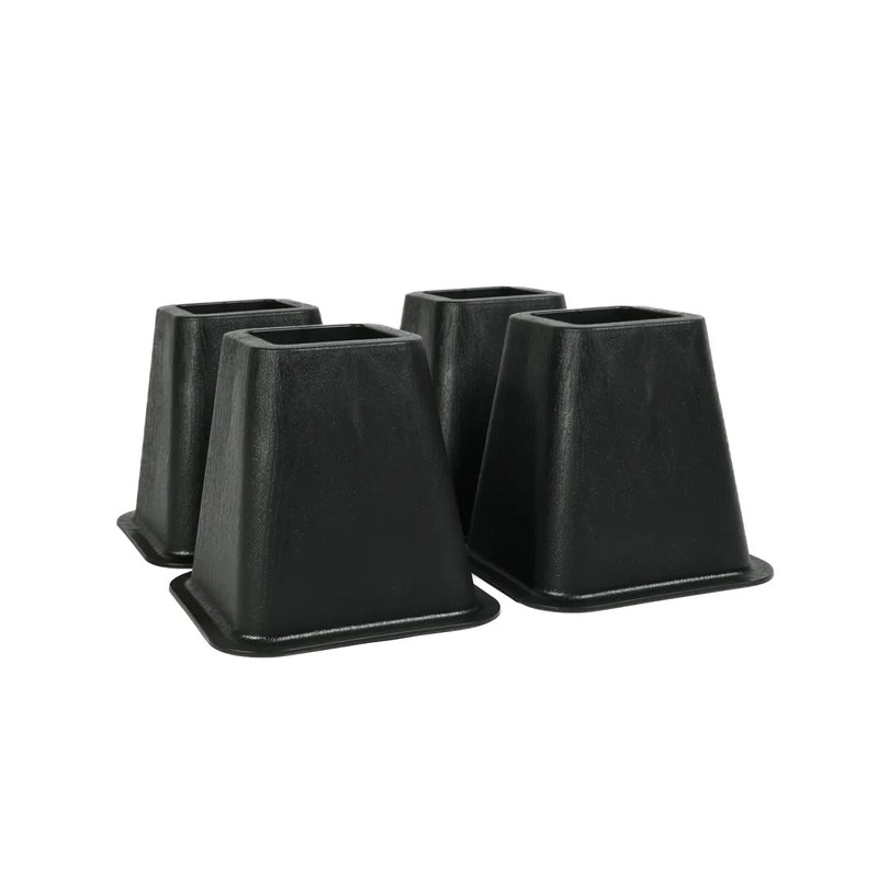 - Made of heavy-duty plastic, which can stand the weight of the heaviest of furniture in your home or office, they can safely support a total of up to 1,300 lbs. (when bed risers are used together) but make sure to use these only if a proper fit is being delivered