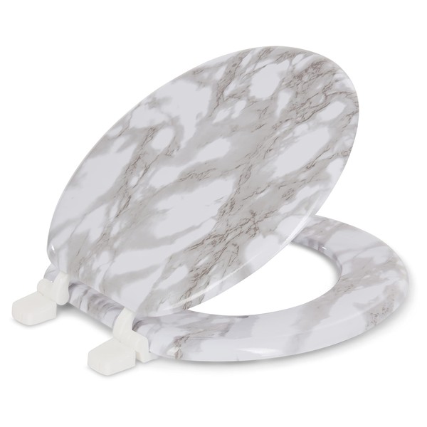 J&V TEXTILES Round Toilet Seat W/ Easy Clean & Change Hinge (Gray)