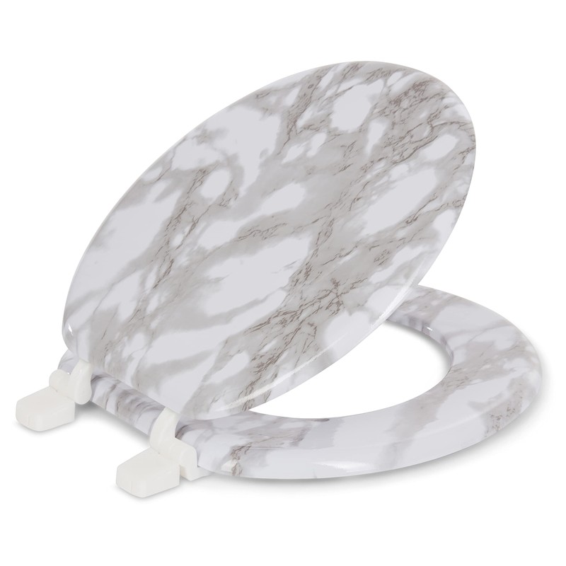 - Molded wooden design provides a high quality sturdy seat that fits most standard round toilets