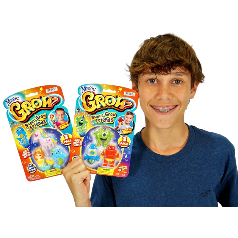 - 2 PACK OF MAGIC GROW TOY (6 UNITS TOTAL) - Each toy pack includes 3 water growing toys. With assorted colors and style (Monster, Robot & Rocket). Includes 1 FunaTon Sticker.