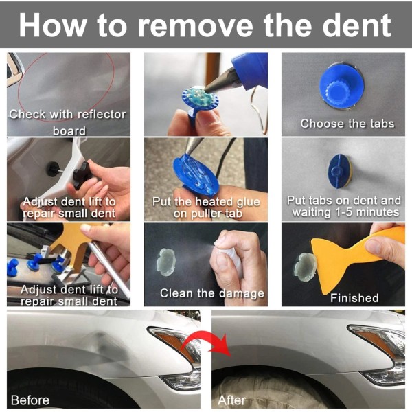 Jaags GLISTON DIY PDR DENT Removal kit, Auto Paintless Dent Repair Kits - Golden Car D