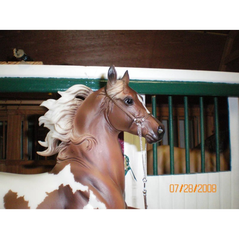Hello and thanks for looking at my auction. Often imitated, never duplicated! Made to fit the Breyer and Peter Stone Arabians, these are simply elegant and simple. These are halters made of nothing but the strongest materials and construction. They are significantly more durable than the similar halters that are glued or sewn together. As a matter of fact, these are virtually indestructible. Lastly, they’re not likely to scratch your models unless it’s done deliberately. This would be suitable for live shows, but these would also be wonderful if incorporated into a performance class theme. They are even durable and affordable for play, but watch out for the little ones. There are small parts. If you have any questions about the halters’ quality or about me as a seller, feel free to review my feedback profile. To make this description complete, these are also GUARANTEED for up to one year from time of purchase (or auction close) against structural failure. If anything breaks as a matter of normal use, the halter will be replaced. Any one who wins five or more auctions wins free shipping (as long as all are shipped together), and if you win 10 or more auctions, I’ll reward you with a bonus halter from my rather large selection of colors. That’s 11 halters for the price of 10! YOU CAN’T LOSE with Jaapi halters! Note: not for children under three and not for real live animals. Sorry, the horse is not included in the auction.