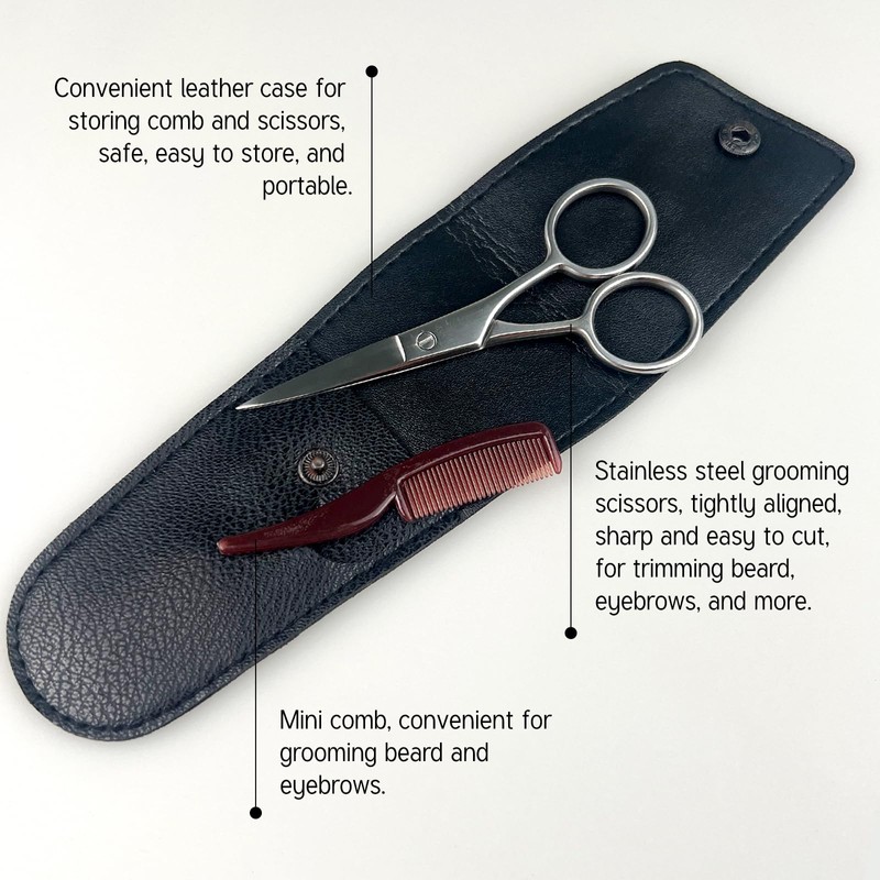 - Convenient Travel Kit: Includes a mustache comb and grooming scissors in a compact carrying case, perfect for maintaining facial hair on the go.