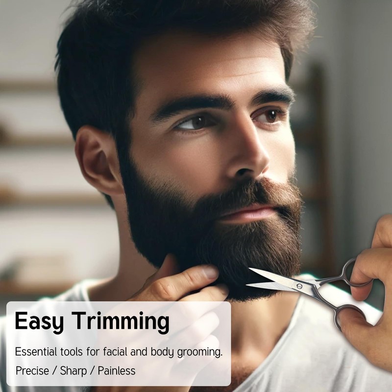 - High-Quality Scissors: Crafted from durable materials, the sharp, precise scissors easily cut through both thick and thin facial hair, ensuring smooth and clean cuts.