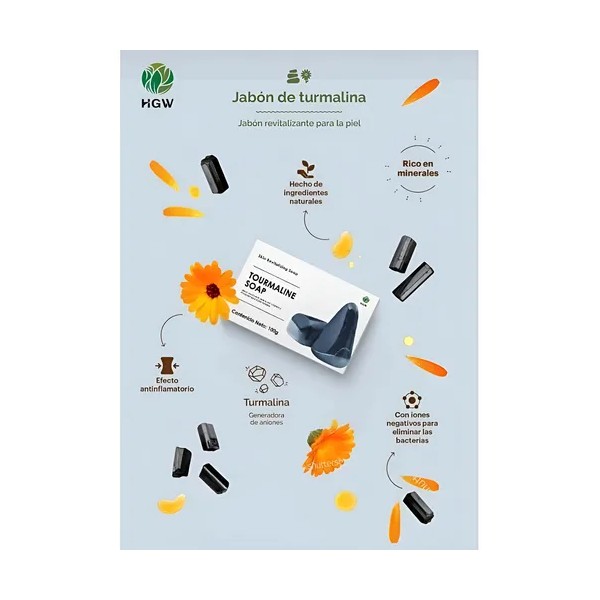 Transforma tu rutina de cuidado con el Pack de 3 Jabones HGW Tourmaline Soap, elaborado con nano turmalina, aceite de flores de caléndula e ingredientes 100% naturales.
