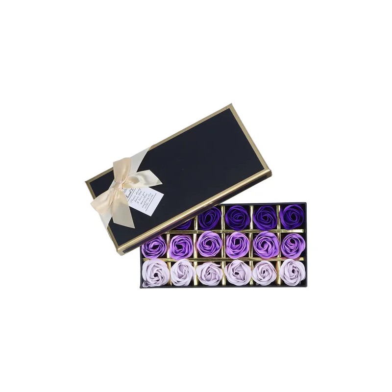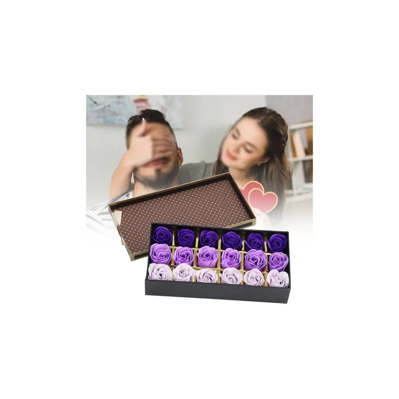 1 caja de regalo, 1 funda, 18 jabón de rosas