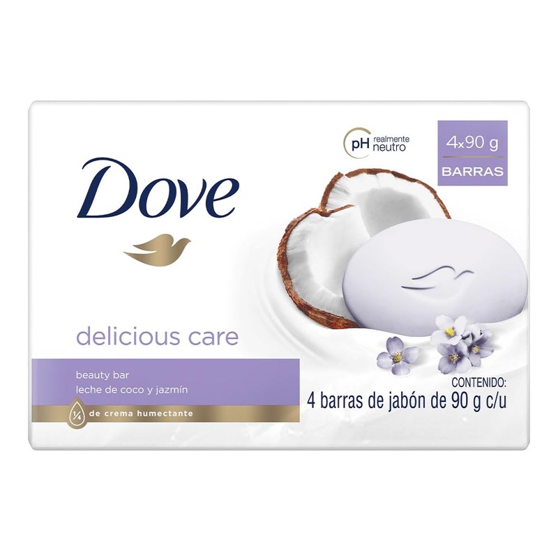 Jabón Dove Delicious Care Leche de Coco y Jazmín 4 x 90 g
