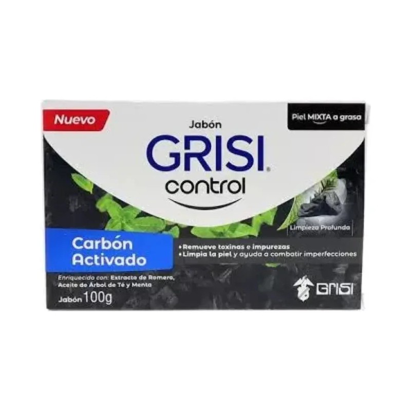 Jabón Grisi Control Carbón Activado brinda una limpieza profunda que ayuda a combatir futuras imperfecciones en la piel.
