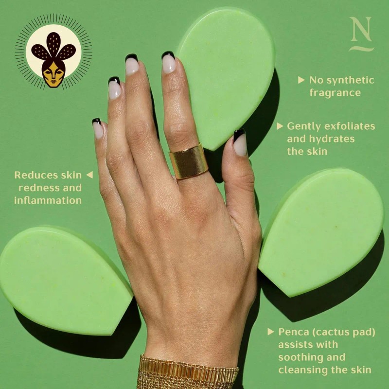 Jabón de Cactus Planta Futura de Nopalera Una firma de Nopalera en formulación y diseño audaz, el jabón en barra Planta Futura Cactus combina el arte hecho a mano con ingredientes nativos indulgentes para evocar una sensación de propósito y paz en cada espuma; Ingredientes vegetales premium Impulsado por aceites vegetales y manteca, nuestro jabón vegano está elaborado con amor utilizando el método de proceso en frío, que preserva las propiedades que aman la piel de nuestra lujosa fórmula. Sumérgete en un viaje sensorial mientras cada barra proporciona una espuma rica y cremosa, dejando tu piel mimada y fresca; Jabón limpiador e hidratante Con una fórmula de doble acción que limpia tu piel sin resecarla, este jabón artesanal contiene aceite de limoncillo para un aroma sutil que promueve la relajación. El cactus de tuna mantiene el equilibrio de humedad natural de tu piel, mientras que el limoncillo elimina las impurezas de la piel; Cómo usar En la ducha o el baño, haz espuma con el jabón de cactus Planta Futura con agua tibia entre tus manos o un paño suave. Frote con movimientos circulares por todo el cuerpo para lograr la limpieza deseada. Apto para todo tipo de piel, este limpiador se puede usar como jabón de manos o para rostro y cuerpo. Nopalera Skincare: Destacada en Shark Tank, Nopalera es una colección para baño y cuerpo elaborada con ingredientes limpios como el nopal, un cactus fundamental en la identidad cultural mexicana. Nuestros productos se fabrican en EE. UU. y nos enorgullece ser una empresa propiedad de mujeres y minorías. Todos nuestros productos estan en inglés SKU 100625142152