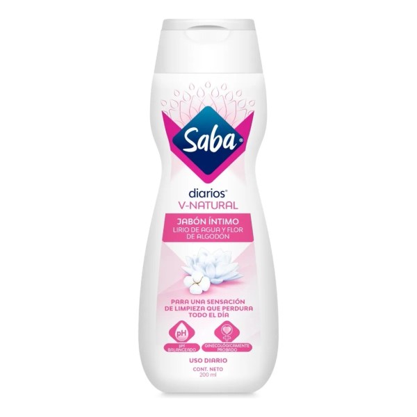 Jabón Íntimo Saba V-Natural 200ml | pH Balanceado | Con Extractos Naturales