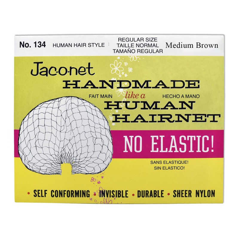 Hair Net Jac-O-Net Handmade No Elastic Regular Size, Medium Brown,1 Net Per Pack [1 Pack]