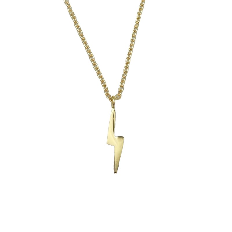 Jack and Jewelz Yellow Gold Lightning Bolt Pendant, Sterling Silver 14K Gold Plated Chain and Pendant - Hypoallergenic Jewelry for Women, Medium, Gold, No Gemstone