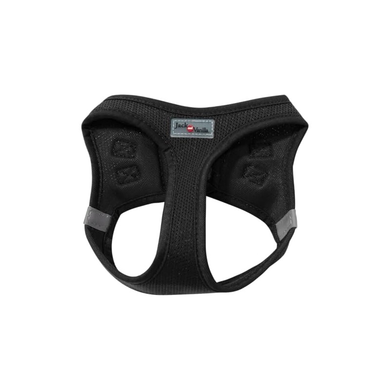 JACK AND VANILLA, Expedition Breathable Mesh Harness for Dogs Custom Fit Reinforced Safety Elegant Design Easy Care Size 43-49 cm Black