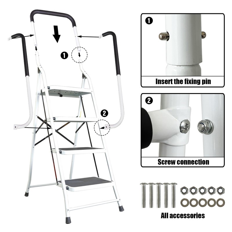 - Application: This step ladder is perfect for home, office, kitchen and garage, making it easy to retrieve items stored in high places. If you have any questions, please feel free to contact us.