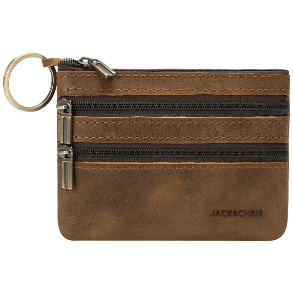 Jack&Chris Coin Purse Pouch for Men, Genuine Leather Coin Purse Zipper Pocket with Keychain Ring, Coin Bag for Men,JC301-8