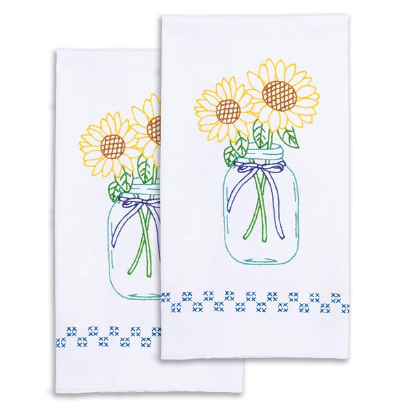 Jack Dempsey Needle Art Sunflowers Embroidery Towels, white