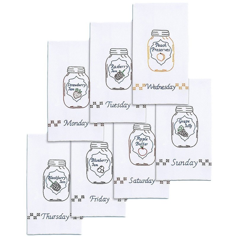 Jack Dempsey Stamped White Decorative Hand Towels, 15-Inch by 30-Inch, Mason Jars Days of The Week, Set of 7