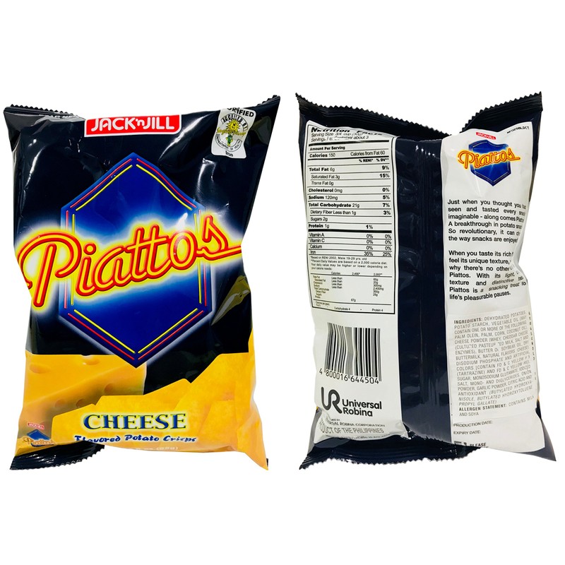 - Jack & JIll Piattos Cheese Flavored Potato Crisps, 3 oz, pack of 3