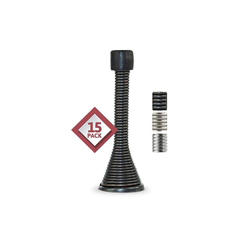 Jack N’ Drill Door Stopper (15 Pack) - 3⅛” Light Duty Spring Door Stop with Flexible Spring and Non-Marking Tip, Door Stops with Finishes to Match Every Home and Office