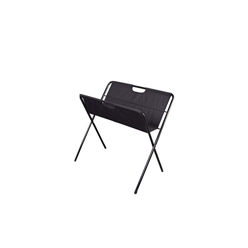 This great print rack is light weight and folds flat for easy storage. It has a support bed of black canvas that is sewn on to a sturdy, black aluminum tube frame with rubber feet. All have hand holes for carrying. A great way to display on store prints and paintings. Shipped partially assembled.