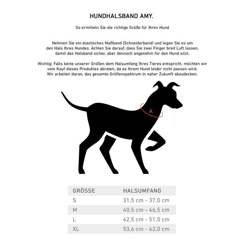 Size S: neck circumference 31.5-37.0 cm - width: 2.0 cm.