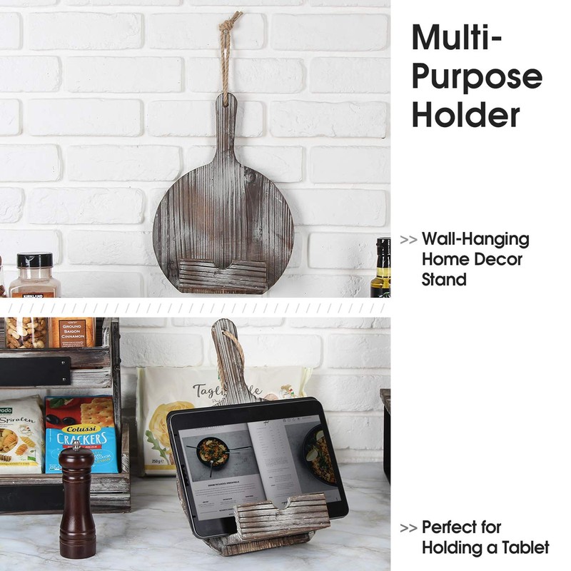 - [Antique Cookbook with Rustic Charm] This vintage wood stand that looks like a round cutting board is perfect displaying your cook books, recipes, magazines on your kitchen counter top. You may also display menus for your cafes, restaurants, and bars.