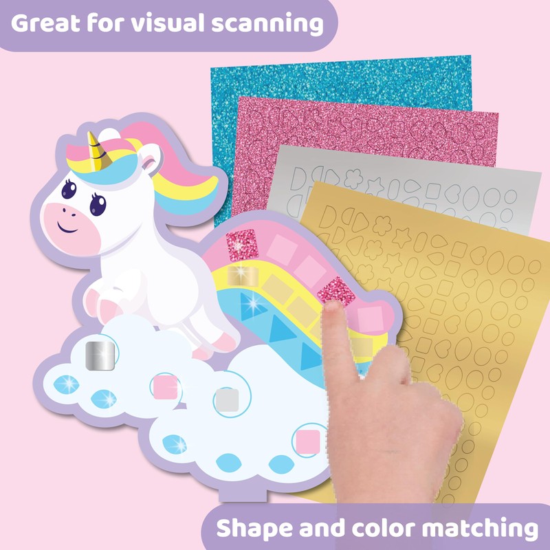 - ENRICHING CREATIVE PLAY - More than just fun, Sparkly Sticker Fun promotes fine motor skills and pincer grasp development. Each double-sided design comes with a foam stand that can be displayed for storytelling.