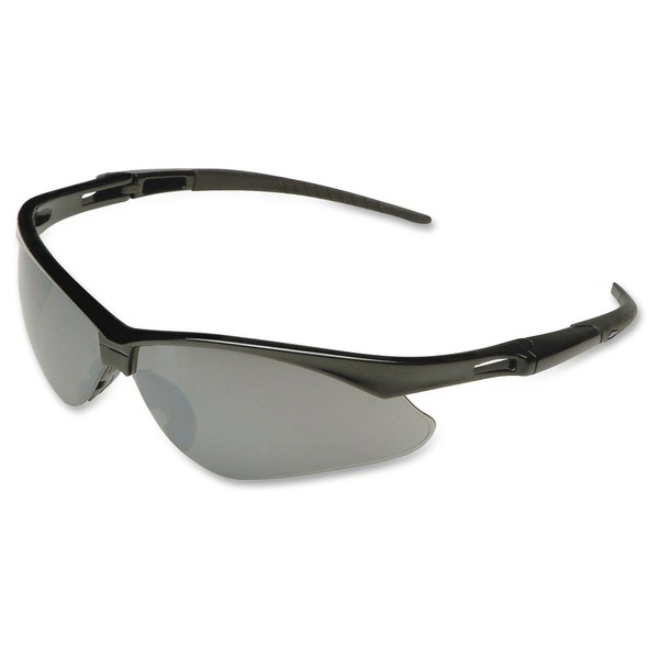 - These sleek and sporty glasses feature lightweight construction, temples, and single wraparound lens that offers protection from sides and front.