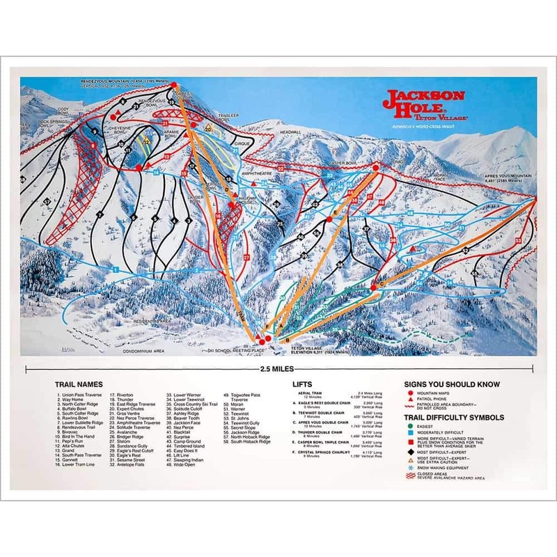 Jackson Hole WY, Ski Area Map Poster, Size 22 x 28 inches