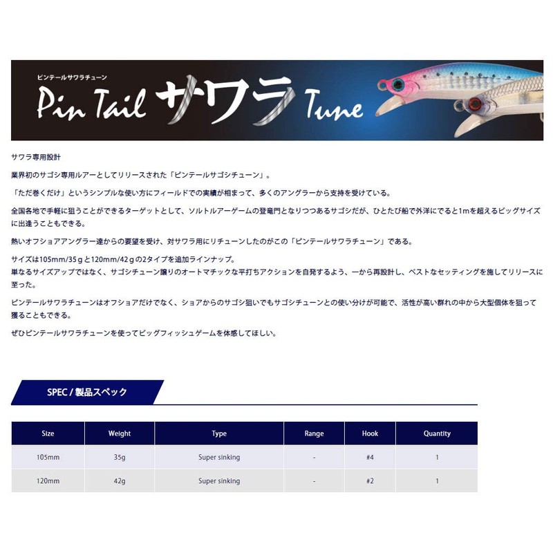 Jackson Pintail Sawara Tune Lure, 1.5 oz (42 g), SNI Fresh Sardine