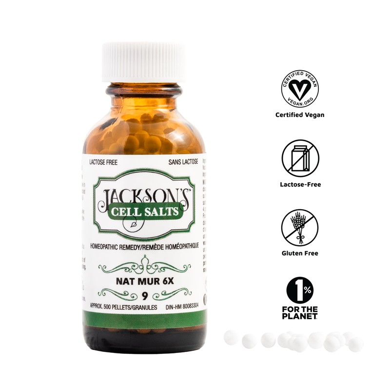 Jackson’s #9 Cell Salt NAT Mur 6X (500 Pellets / 125 Doses) – Certified Vegan, Lactose-Free Natrum Muriaticum 6X