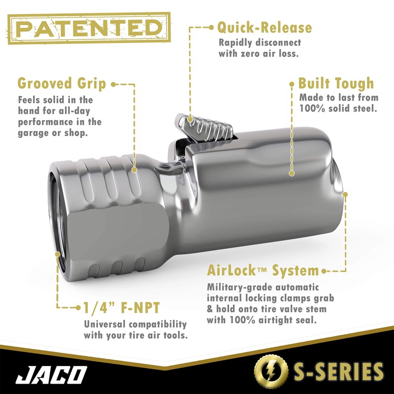 JACO Lightning S-Series Tire Air Chuck - 1/4" F-NPT | Open Flow (2 Pack)