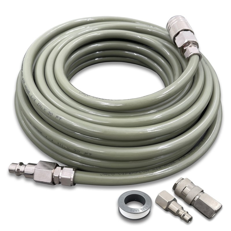 - 1/4" Air Hose Fittings - connect to your air tools & accessories with our included air fittings kit that includes (2 pcs) Industrial female couplers, thread seal tape, and (2 pcs) Industrial female air plugs (included fittings are 1/4" F-NPT).
