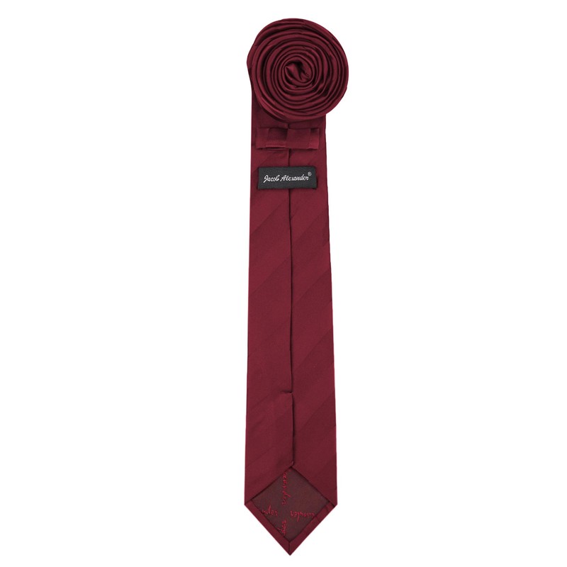 If you're looking for a nice boys' prep untied striped tone on tone neck tie, look no further. Our boys' burgundy solid color tonal stripe ties include alternating ribbed and solid toned stripes that look great at any formal or informal gathering. Perfect for weddings or any fancy occasion. This boys' prep untied neck tie length measures 48 inches (122 cm). Boys' tie measures 2.25 inches (5.75 cm) in width. The collection from Jacob Alexander features regular men's self-tied neck ties, slim width neck ties for men, clip-on neck ties, zipper ties, bow ties, boys' sizes, and pocket squares. Matching pocket square goes great with all men and boys' sizes. Many colors and style available.