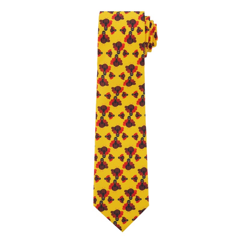 Jacob Alexander Men's Happy Thanksgiving Turkey Regular Neck Tie - Yellow Brown