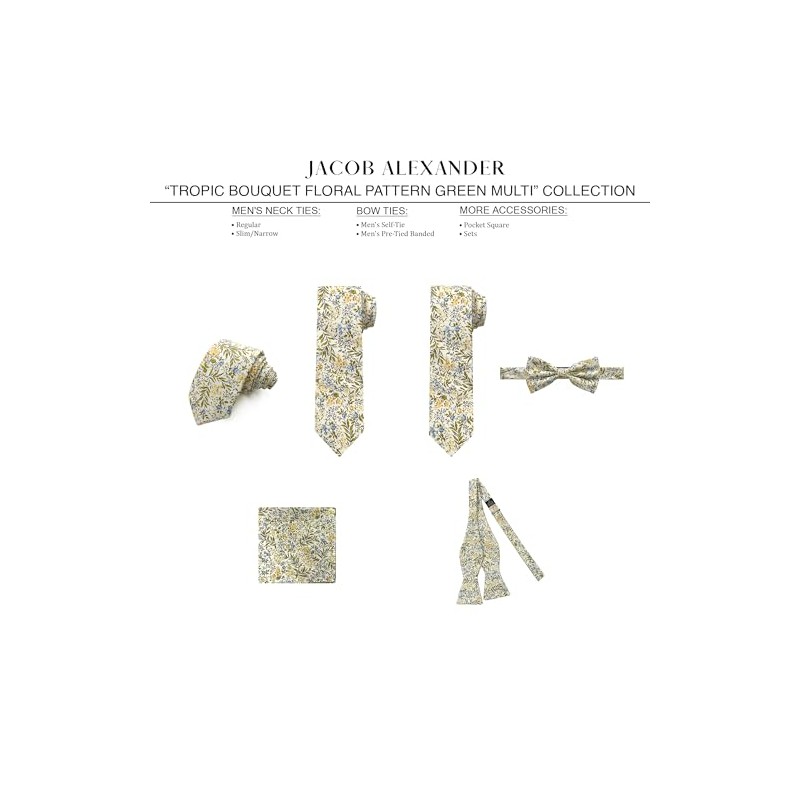 Jacob Alexander Men's Tropic Bouquet Floral Pattern Traditional Freestyle Self-Tie Bow Tie - Green Multi