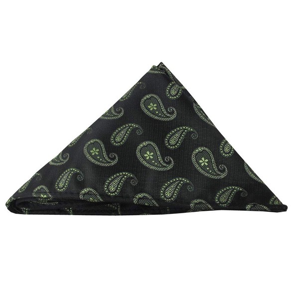 Jacob Alexander Paisley Pattern Pocket Square Handkerchief - Black Green