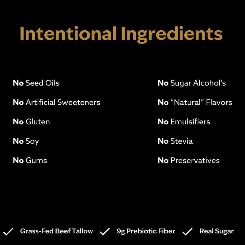 Grass-Fed Beef Tallow: the highest-quality fat source, beef tallow, is at the base of our bars. This healthy fat will leave you satiated (and give the bar an amazing texture).