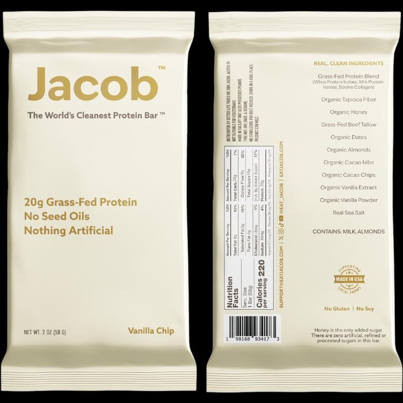 Jacob Bar - Real Clean Ingredients, Grass-Fed High Protein, Gluten-Free, No Seed Oils, Nothing Artificial - Size: 9-pack, Flavor: Vanilla Chip