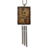 What better way to soothe the soul and calm nerves in bumper to bumper traffic than with this delightful musical car charm with mini wind chimes? Cast metal charm is finished in antique brass. Relaxing and pleasing sound from three perfectly tuned aluminum pipes. The blending of its three notes, all tuned in the pentatonic scale, creates a pleasant & musical effect that makes music wherever you go. Made by musical instrument maker Jacob Sokoloff. Approximate measurements: 3-in tall x 3/4-in wide, on a 9-in ball chain. Longest pipe 1-1/4″. Made in the USA.